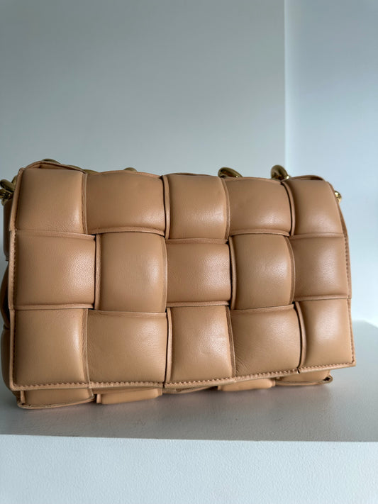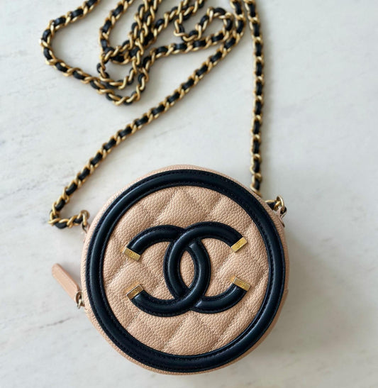 CC Caviar Quilted Round Filigree Crossbody Beige/black