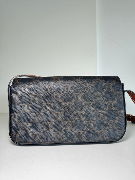 Celine Claude in Triomphe Canvas & Calfskin shoulder bag
