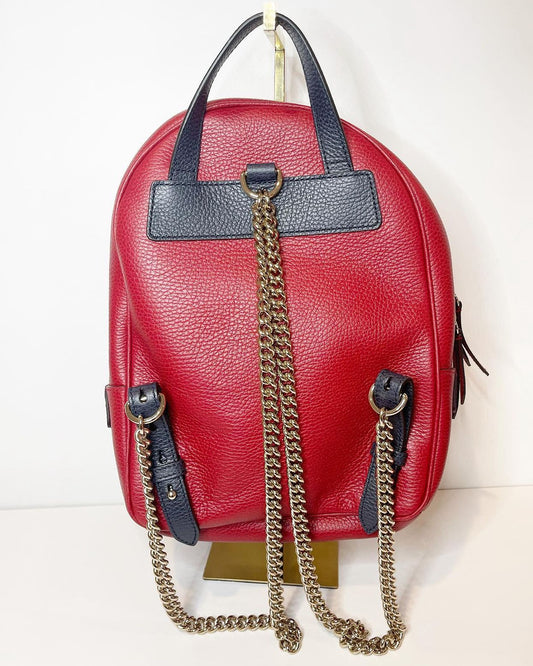 GUCCI Bi-Colour Soho Chain backpack red/navy blue leather