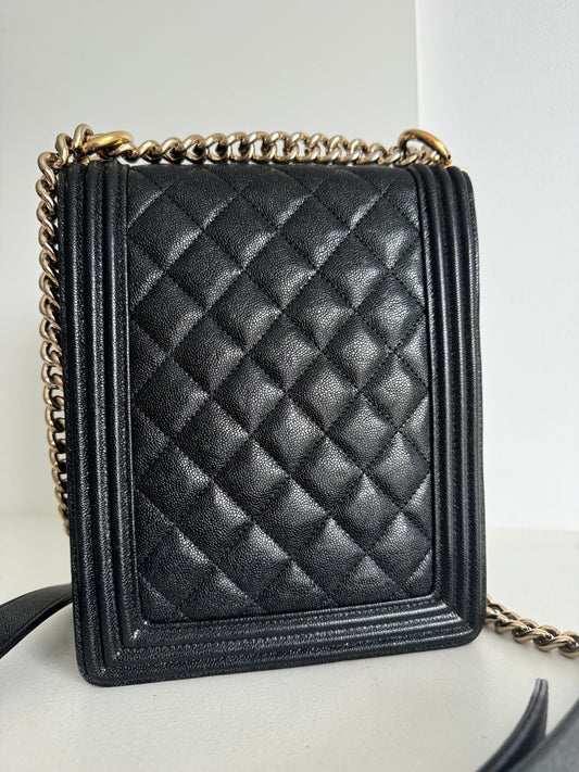 Chanel Caviar Quilted North South Boy Flap Bag. Black W/ GHW
