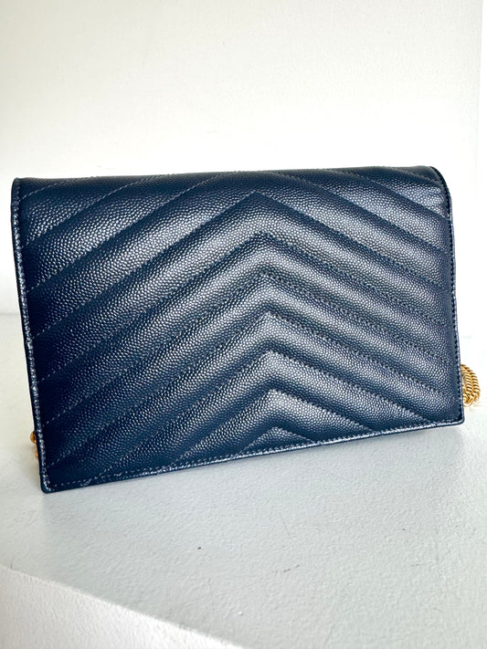 Saint Laurent Chevron Quilted Wallet On chain , Navy