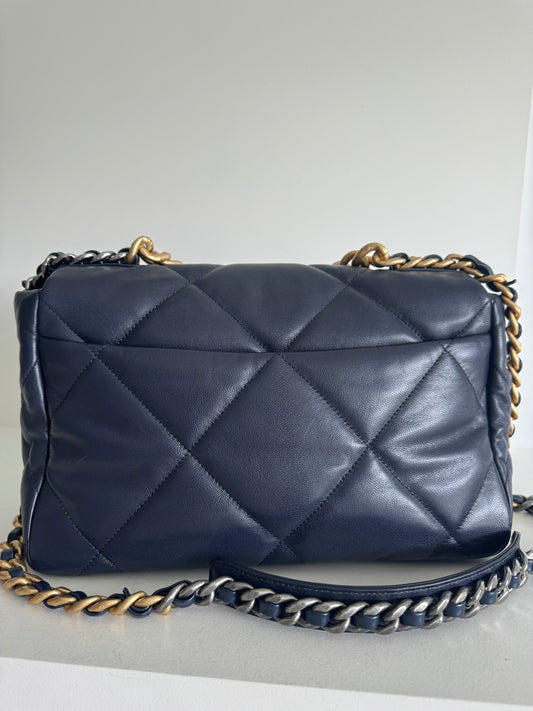 Chanel Navy Quilted goatskin Medium Chanel 19 Flap Bag Mixed Hardware