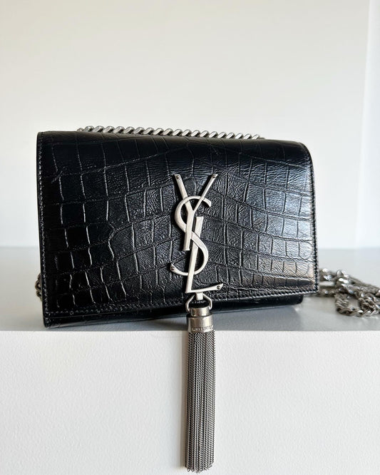 Saint Laurent Small Kate Croc Embossed bag