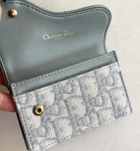 Christian Dior Saddle Flap Card Holder Gray Oblique Jacquard