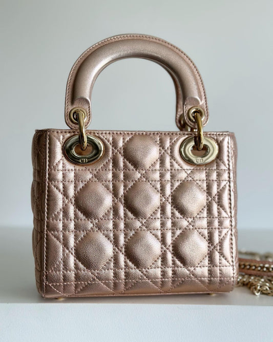 Christian Dior Mini Lady Metallic Cannage Quilt