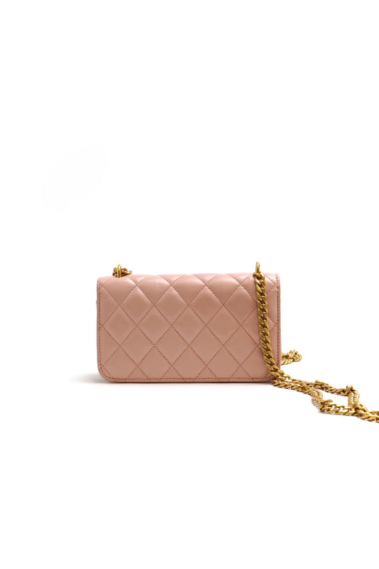 Chanel Camellia Phone Holder With Chain Light Pink