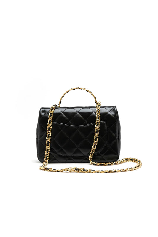 Chanel Medium Shiny Lambskin Quilted Golden Links Top Handle Flap Black