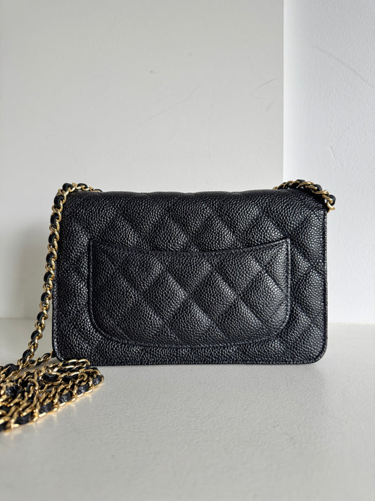 Chanel Black Quilted Caviar Wallet On Chain, GHW