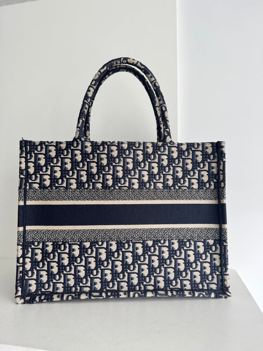 Dior Medium Book Tote Blue Oblique Embroidery