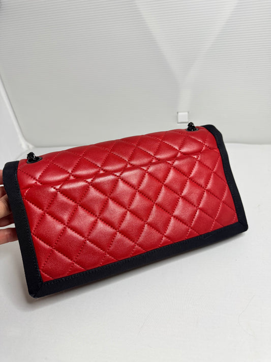 Chanel Lambskin Grosgrain Quilted Flap Red Black