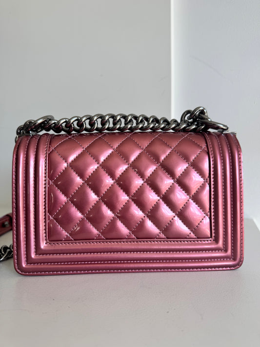 Chanel Metallic Patent Calfskin Quilted Small Boy Flap, Pink