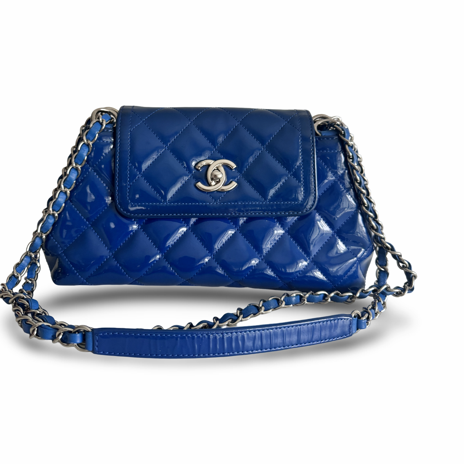 Chanel Blue Patent Leather Medium Accordion Shoulder
