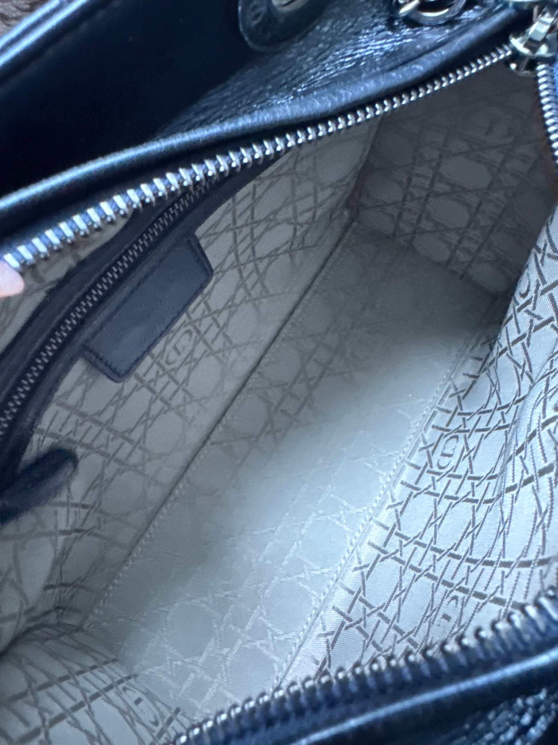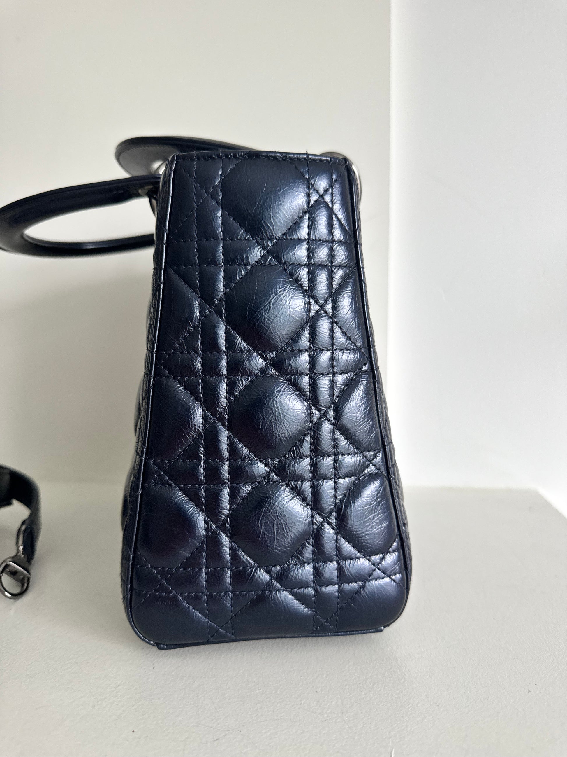 Christian Dior Medium Lady Navy with signature Cannage Stitching