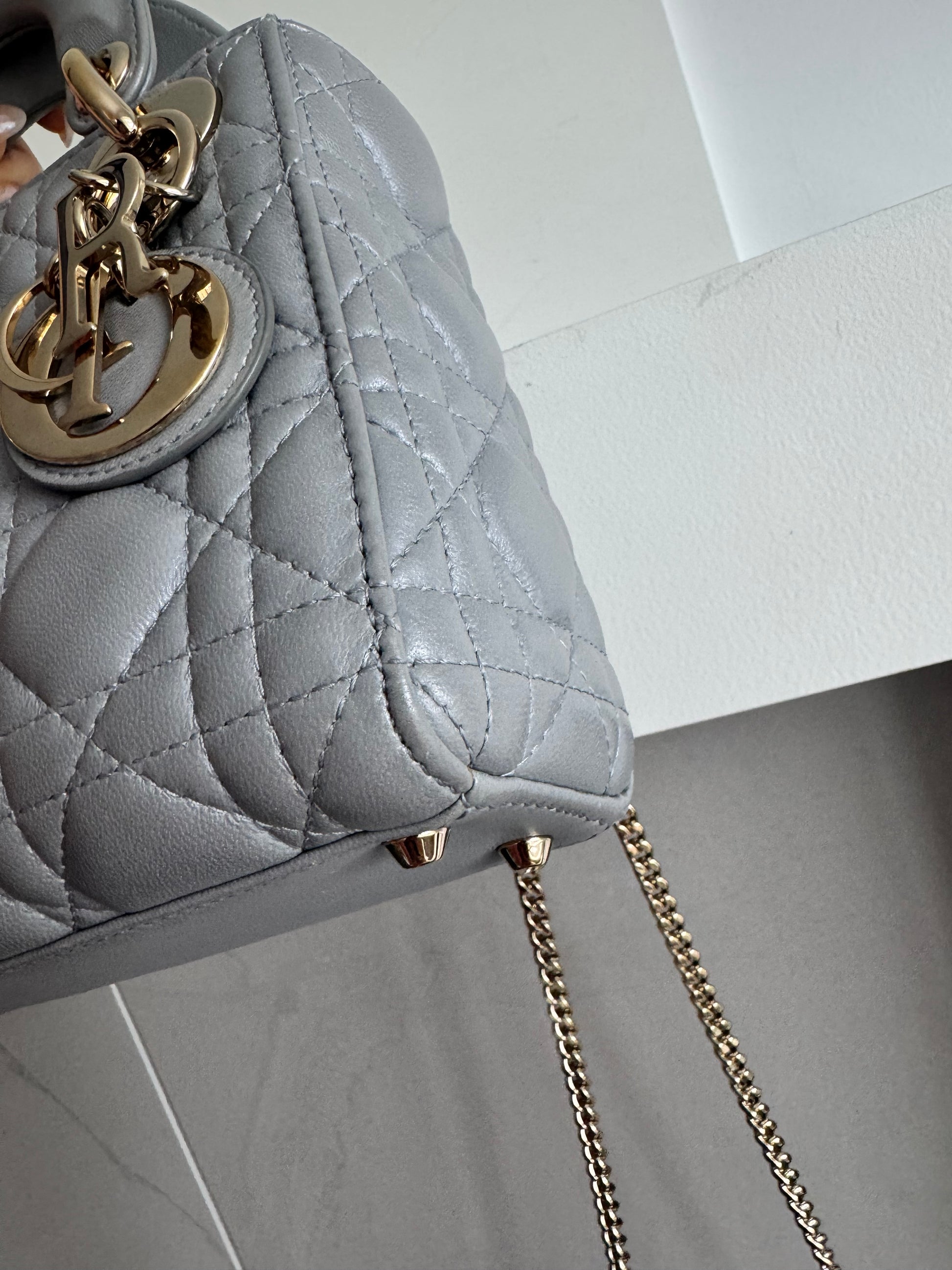 Christian Dior Mini Lady Pearl Grey Lambskin W/LGHW