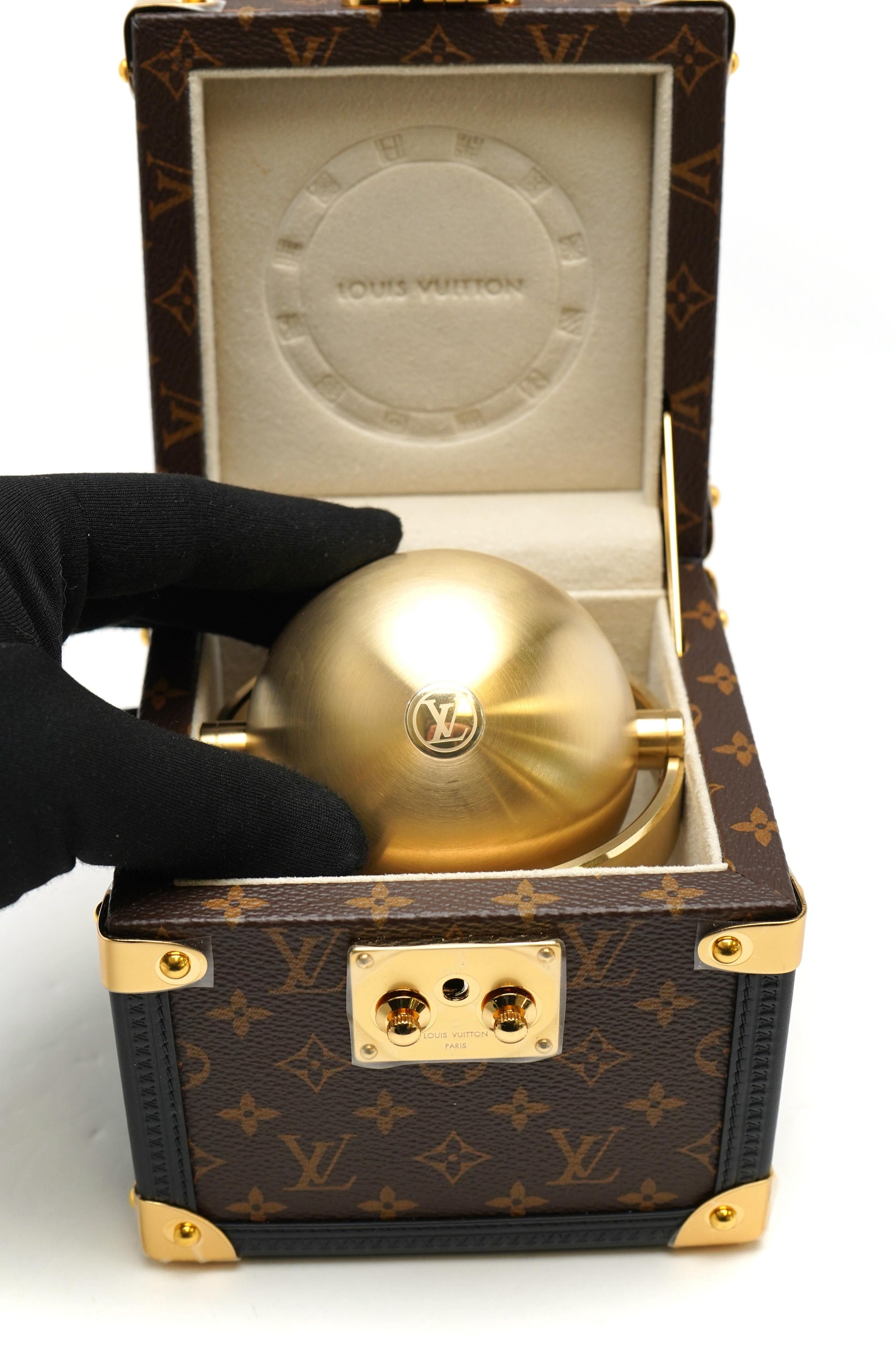 Louis Vuitton Trunk Table Clock, Quartz, 80mm, Brass, Monogram