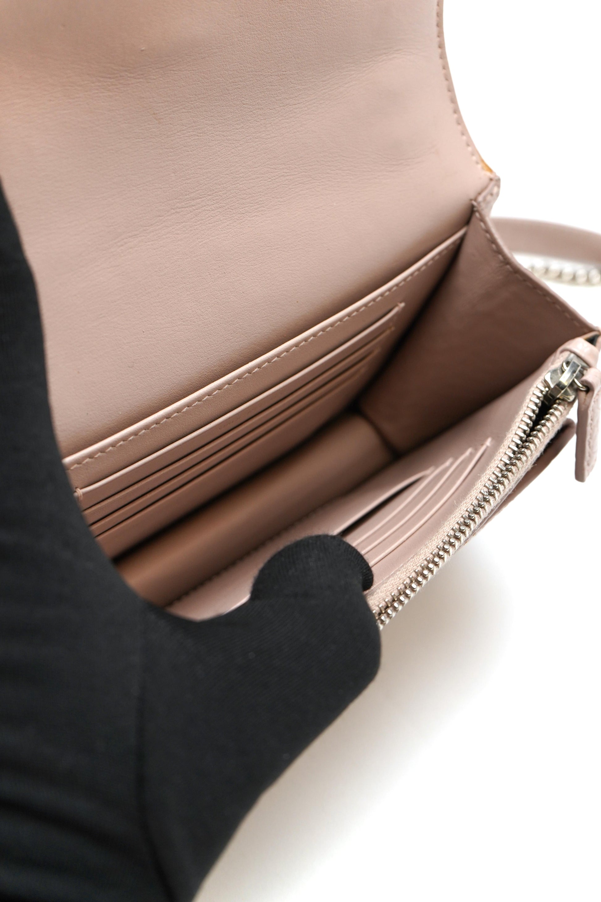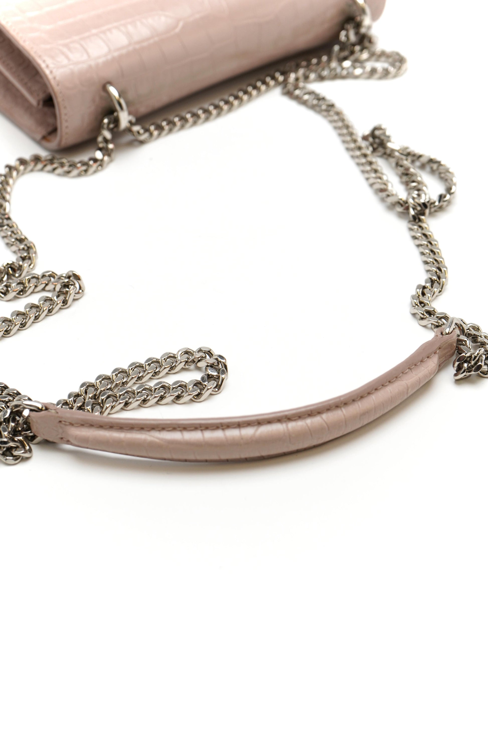 Saint Laurent Calfskin Crocodile Embossed Monogram Sunset Chain Wallet