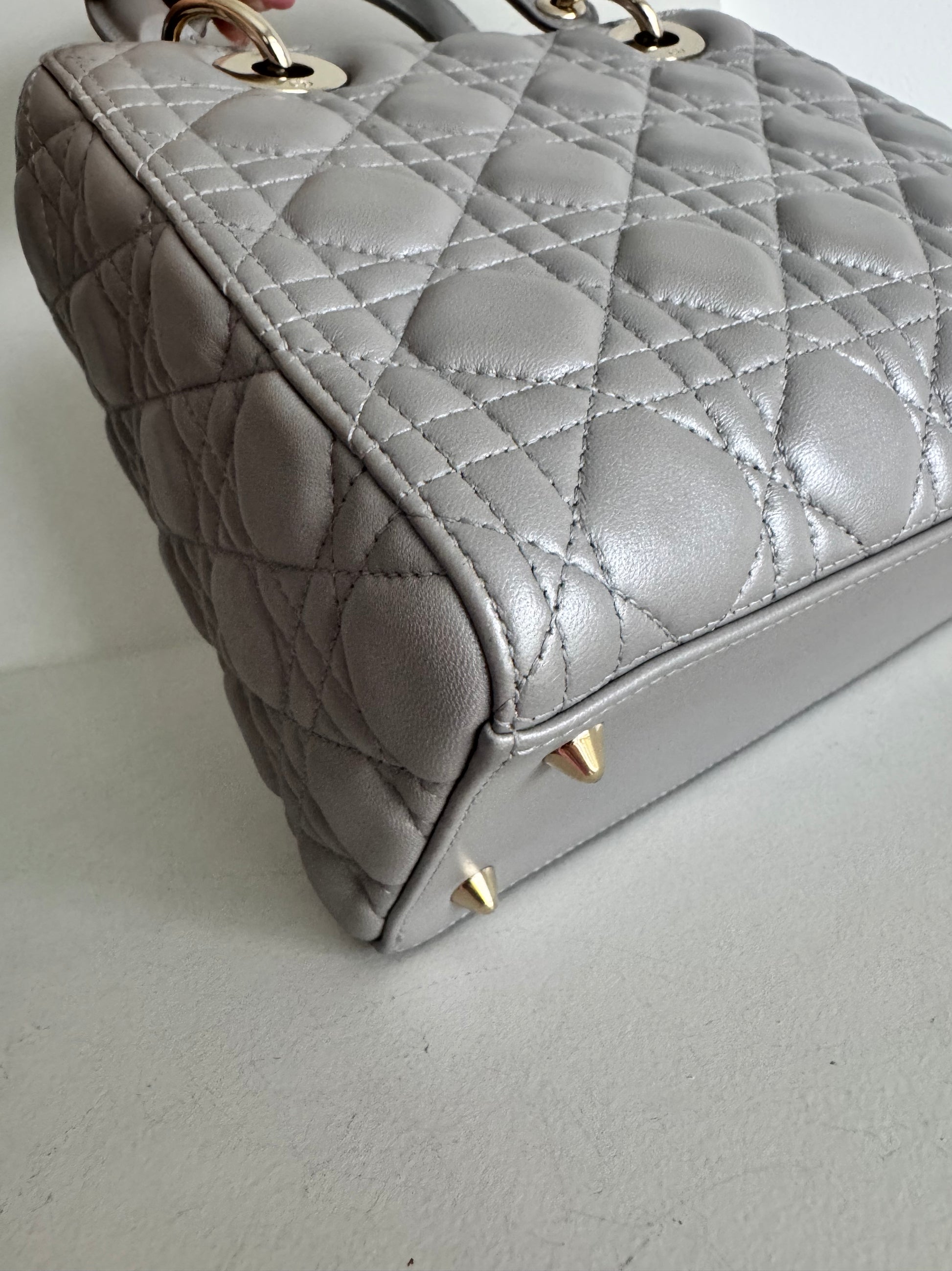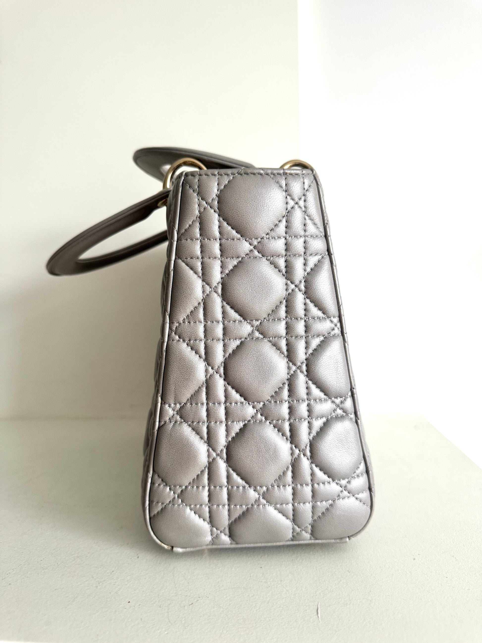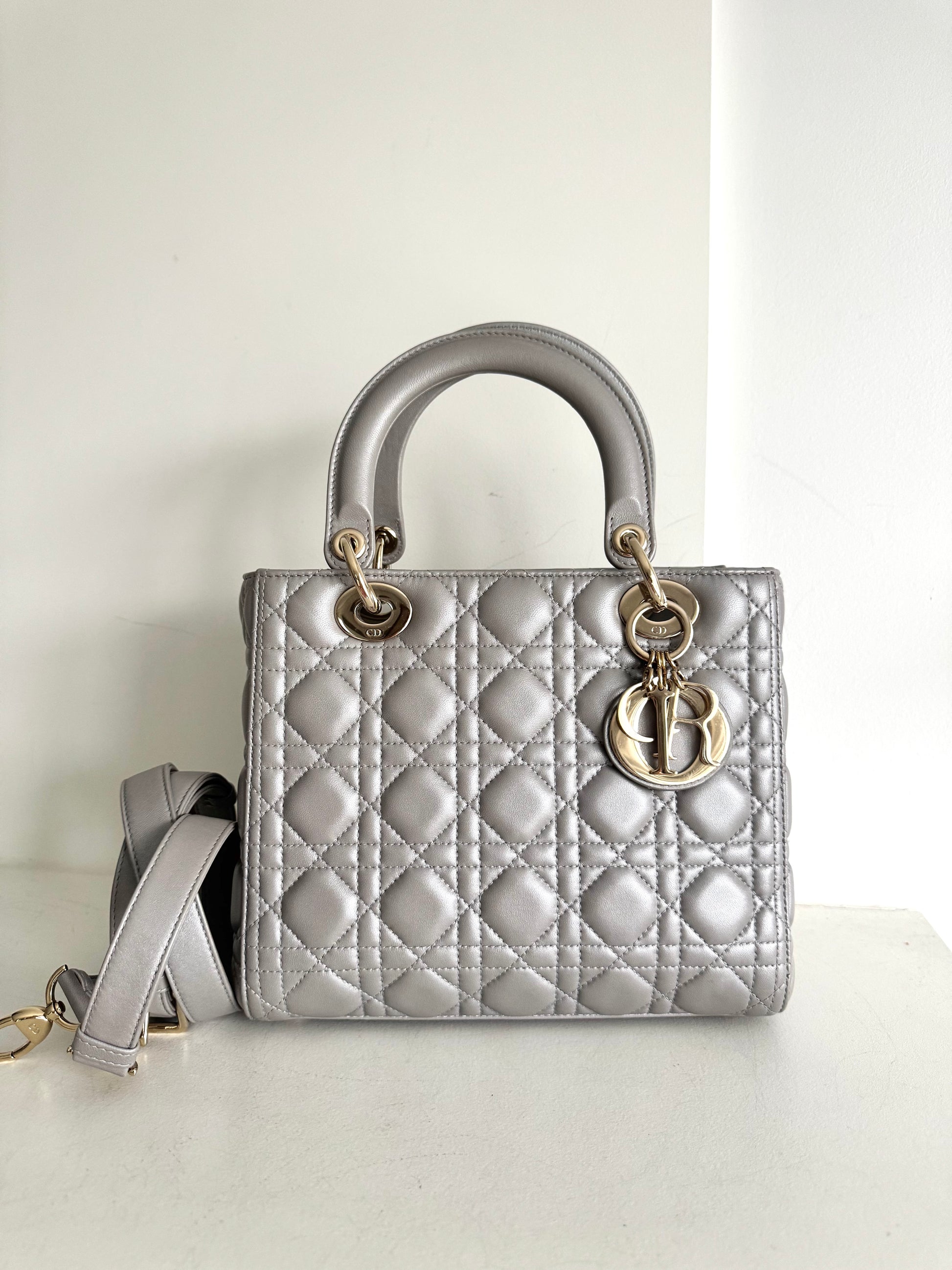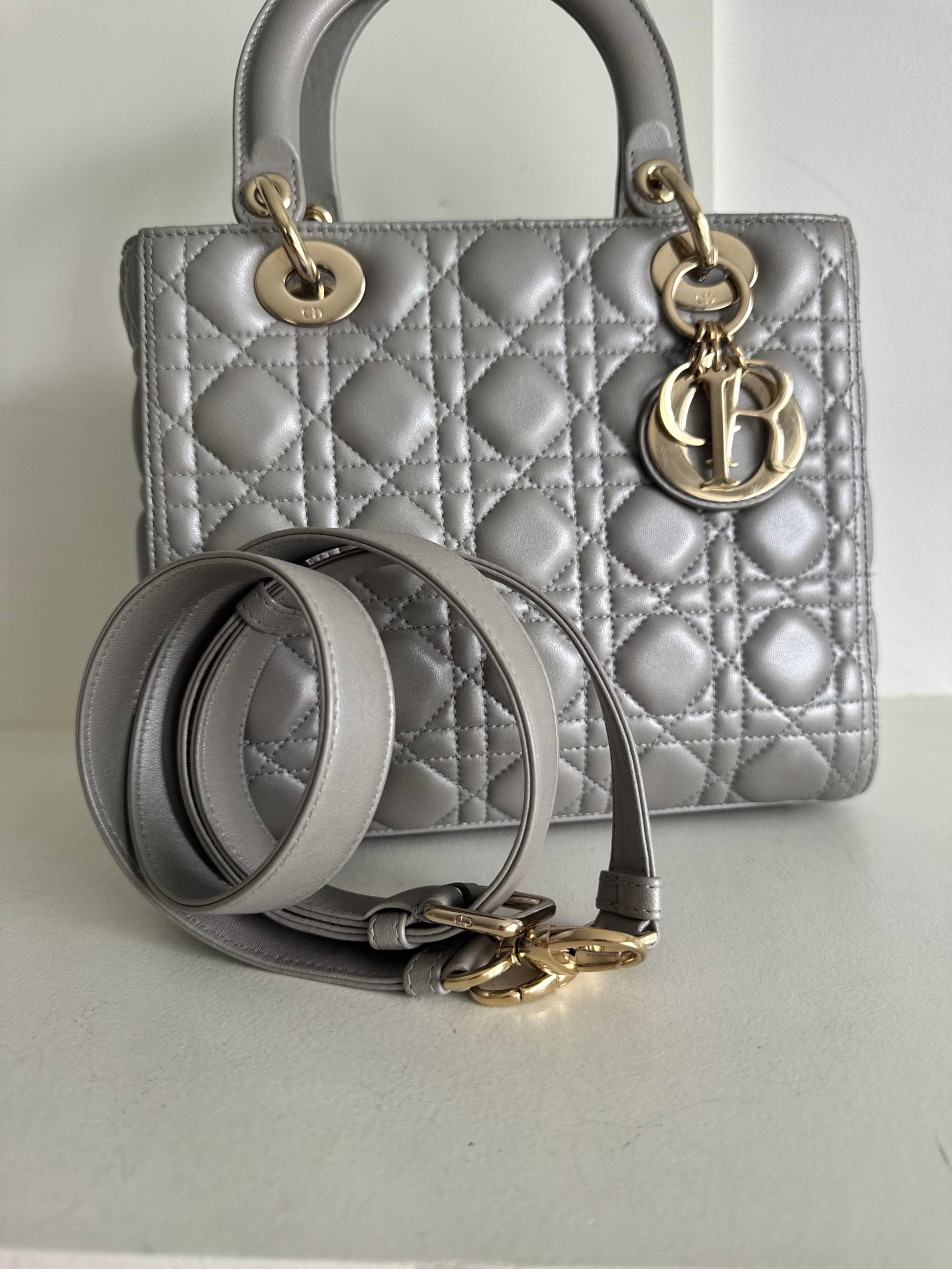 Christian Dior medium Lady, grey with signature Cannage stitching